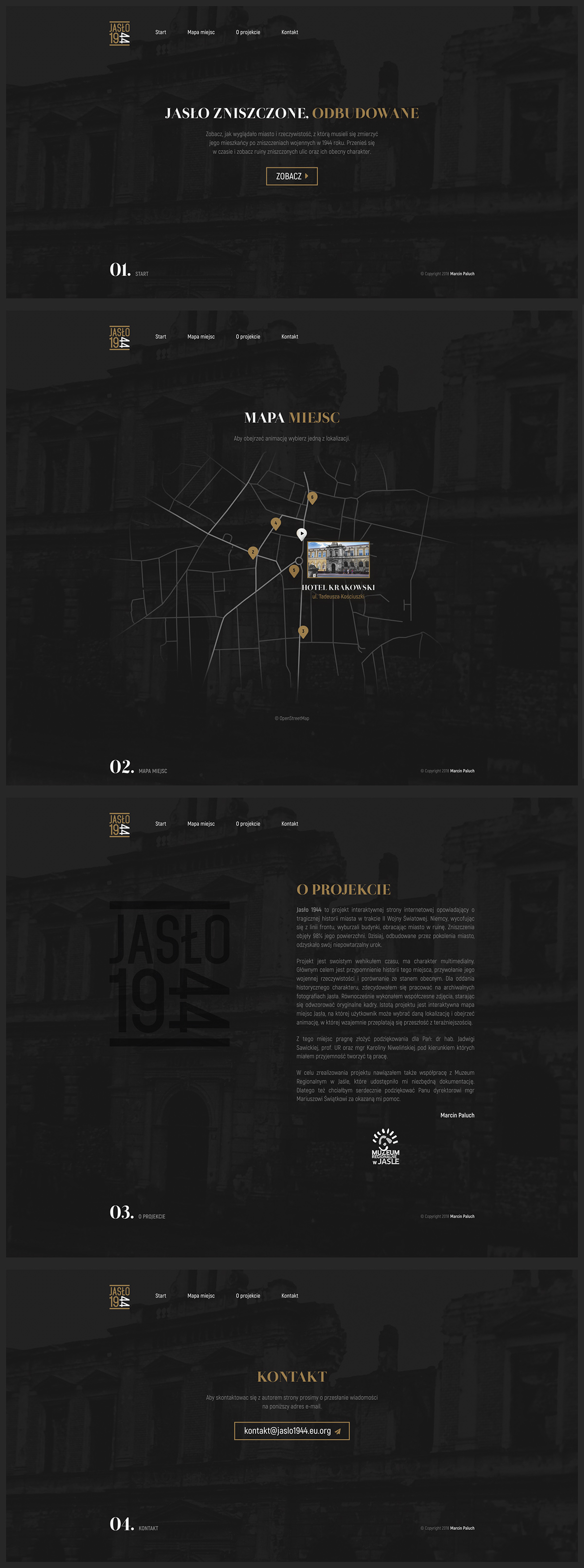 Projekt graficzny oraz front-end strony, opowiadającej historię zniszczonego miasta - Jasła.